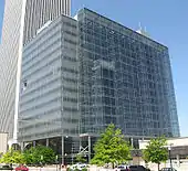 The BOK Tower, built during this period, is the second tallest building in Oklahoma and the surrounding states of Missouri, New Mexico, Arkansas, and Kansas.[49] Tulsa also has the third-, and fourth-tallest buildings in the state, including the Cityplex Tower, which is located in South Tulsa across from Oral Roberts University, far from downtown.[50] One of the area's unique architectural complexes, Oral Roberts University, is built in a Post-Modern Futuristic style, incorporating bright gold structures with sharp, jetting edges and clear geometric shapes. The BOK Center, Tulsa's new arena, incorporates many of the city's most prominent themes, including Native American, art deco, and contemporary architectural styles.[51] Intended to be an architectural icon,[52] the building was designed by César Pelli, the architect of the Petronas Towers in Malaysia.