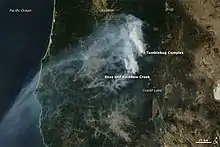 The Tumblebug Complex Fire burned 14,570 acres (5,900 ha) of Willamette National Forest land in Lane County, Oregon, United States, from September 12, 2009 to October 2009.[2][4] The fire was located about 23 miles (37 km) southeast of Oakridge, Oregon, and roughly 5 miles (8.0 km) southwest of Crescent Lake.[2][3]
