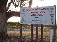 The Tumblong area is also home to a reasonably large vineyard area which is a part of the Southcorp Wines group which includes well known Australian wine names such as Penfolds and Lindemans. The vineyard known as Tumblong Vineyard is on the Tumblong to Mundarlo road.