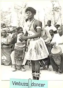 Vimbuza (pl. of Chimbuza) is a term used among the Tumbuka-speaking peoples of northern Malawi and eastern Zambia to describe several classes of possessive spirits, the embodied states of illness they produce in a person, and the therapeutic drumming, music, dance, and ritual that is performed to remedy the symptoms.[52] As a cultural practice, Vimbuza is a local version of a more widespread therapeutic complex known as ngoma, which is found throughout much of central and southern Africa and has been the focus of important scholarship by John M. Janzen and others,[53] and even earlier by Victor Turner in his writings about Ndembu drums of affliction. [54]