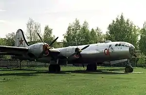The Tupolev Tu-4 (Russian: Туполев Ту-4; NATO reporting name: Bull) is a piston-engined Soviet strategic bomber that served the Soviet Air Force from the late 1940s to mid-1960s. It was reverse-engineered from the American Boeing B-29 Superfortress.