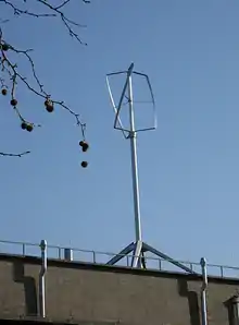 The Turby is a brand of vertical-axis Darrieus wind turbine. The three vertical aerofoil blades have a helical twist of 60 degrees, similar to Gorlov's water turbines.[1][2][3][4][5]