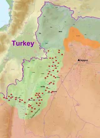 ![]() Turkish flags represent Turkish observation posts and other military installations as of 20 December 2020 | ||||||||