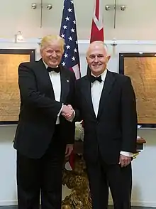 The China–Australia Free Trade Agreement agreed by the Abbott government concluded its passage through Parliament in October 2015.[117] The Turnbull government continued the Abbott government's negotiations for an India Free Trade deal.[118] Turnbull also continued the Abbott government's moves to improve trade relations with Indonesia and Germany, and to establish the Trans-Pacific Partnership (TPP). Turnbull met with Indonesian President Joko Widodo and German Chancellor Angela Merkel on his November 2015 world tour and discussed trade.[119] Andrew Robb signed the TPP in February 2016.[116]
