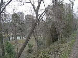 The Meanders are the original riverbed of the Trinity River through Dallas. For flood control purposes, the Meanders section was rerouted through underground culverts in the early 20th century. The main riverbed was also redirected through a new channel excavated to the west. The channel was engineered with levees and pumps, allowing real estate development of an industrial district in the area.[1]