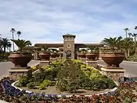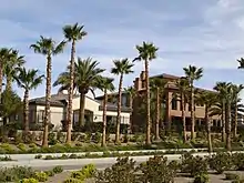 In 2004, Jim Rhodes purchased the Tuscany Golf Club from Commerce Associates. He closed it for renovations to restore the previous design intended by Robinson. It reopened later that year.[35][36] Rhodes Homes also took over the residential aspect, now known as Tuscany Village. Construction of homes was underway in 2005,[37] and the community opened that year.[38] There were 168 homes built by 2006.[39] The community's architecture is based on the Italian region of Tuscany.[38][40] The golf course was praised.[31][41][42] As of 2007, the facility hosted 46,000 rounds of golf annually,[43] and it was named by Golf Magazine as the number-one course in Las Vegas.[40]