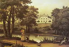Under the rule of the Russian Empire in the 19th century, Tuskulėnai Manor was held by various noble families and high-ranking state officials. In the mid-19th century the main palace was transformed into a guesthouse by prominent doctor and public activist Julian Titius that became a cultural center in Vilnius, often visited by Stanislaw Moniuszko and Józef Ignacy Kraszewski.[4] The manor passed into the possession of Julija Safranovich after 1886, and then was held by the noble family of Melentjevy until World War II.