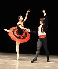 Dancer wearing a pancake tutu in the Grand Pas de deux from Don Quixote