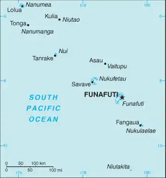 The atolls of Tuvalu acted as staging posts during the preparation for the Battle of Tarawa and the Battle of Makin that commenced on 20 November 1943, which were part of the implementation of "Operation Galvanic".[85] After the war, the military airfield on Funafuti was developed into Funafuti International Airport.