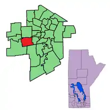 Tuxedo is a provincial electoral division in the Canadian province of Manitoba. It was created by redistribution in 1979, and has formally existed since the provincial election of 1981. The riding is located in the southwest section of the city of Winnipeg.