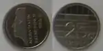 The twenty-five cent was a coin worth a quarter of decimal Dutch guilder. It was used from the decimalisation of the currency in 1817 until the Netherlands adopted the euro as sole currency in 2002. The last minting was in 2001. The coin was the third-smallest denomination of the guilder when the currency was withdrawn, and the largest of a value less than one guilder.