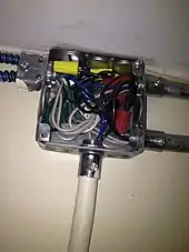 Twist-on wire connectors are not generally recommended for use with aluminum wire in the USA.[1] The US Consumer Product Safety Commission disapproves wire nuts for aluminum wire; instead, special crimp connectors are called for, and as of 2011 the CPSC asserted qualified, second-preference approval of a certain kind of screw terminal.[2] In spite of this, several companies manufacture twist-on connectors, which they claim are designed and rated for use with aluminum conductors.[3] Specific twist-on wire connectors containing a conductive, anti-oxidant gel are registered for use on residential aluminum wiring in Canada, including when new copper wiring is connected to existing aluminum wiring.[4]