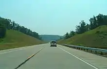 - Interstate 93 (Franconia Notch Parkway) from Lincoln (mile marker 113) to Franconia (mile marker 121), due to fears that building a four-lane highway would destabilize the Old Man of the Mountain, long before the rock formation's natural collapse from erosion occurred on 3 May 2003. The highway was constructed with a median divider. This segment of I-93 is now the only Interstate highway with fewer than four lanes.