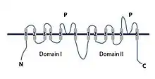 As implied by their name, TPC channels possess two pores and were named for their two Shaker-like repeats, which each have a pore domain.[1][8][9][10][11] This contrasts with two-pore-domain potassium channels, which confusingly have only one pore and were named for the fact that each subunit has two P (pore) domains in its primary sequence.[12][13]