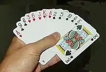 In contract bridge, a two suiter is a hand containing cards mostly from two of the four suits. Traditionally a hand is considered a two suiter if it contains at least ten cards in two suits, with the two suits not differing in length by more than one card. Depending on suit quality and partnership agreement different classification schemes are viable. The more modern trend is to lower the threshold of ten cards to nine cards and consider 5-4 distributions also two suiters.