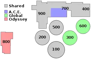 Other parts of the complex are occupied by individual schools. Global Connections occupies the 300 and 600 buildings on the east side of the complex. ACE occupies the classrooms of the 700 building, which excludes portions operated by the complex, such as the gymnasiums. Odyssey occupies the 800 building, a large building at the top of the hill on the western side of the complex. This building was once part of neighboring Chinook Middle School, but since the 1981–1982 school year, it has been used by Tyee, and eventually Odyssey.