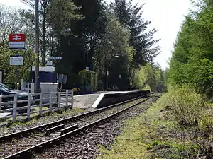 On 12 October 1969, the passing loop, goods yard and one of the platforms were taken out of use. The platform on the north side was retained, it being located on the same side of the railway as the village. The site of the goods yard is now used as a caravan park.
