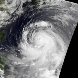 ![]() Typhoon Robyn at peak intensity east of the Philippines on August 7 | |