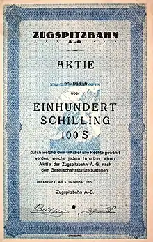 The Zugspitzebahn was the first wire ropeway to open the summit of the Zugspitze, Germany's highest mountain on the border of Austria. Designed and built by Adolf Bleichert & Co. of Leipzig, Germany, the system was a record-holder for highest altitude. Opening in 1926, the Zugspitzebahn connected the Austrian town of Ehrwald (1225 metres above sea level) with the top station at 2,950 metres above sea level next to the summit of Zugspitze.