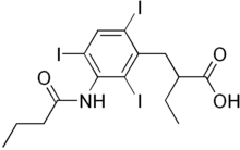 • CCCC(=O)NC1=C(C=C(C(=C1I)CC(CC)C(=O)O)I)I