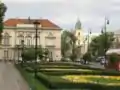 Tyszkiewicz Palace (Polish: Pałac Tyszkiewiczów), also known as Tyszkiewicz–Potocki Palace, is a rebuilt palace at 32 Krakowskie Przedmieście in Warsaw, Poland. It is one of the most beautiful Neoclassical-style buildings in the city.