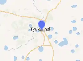 Tyukalinsk (Russian: Тюкали́нск) is a town in Omsk Oblast, Russia, located 60 kilometers (37 mi) northeast of the Nazyvayevsk railway station on the Trans-Siberian Railway and 120 kilometers (75 mi) northwest of Omsk, the administrative center of the oblast. Population: 11,275 (2010 Census);[2] 12,007 (2002 Census);[7] 12,191 (1989 Census).[8]