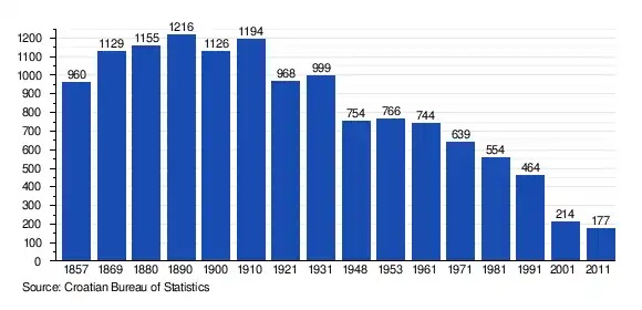 By 1991 census, 234 of its residents were ethnic Serbs (50.43%), 213 were ethnic Croats (45.90%), 6 were Yugoslavs (1.29%), 1 was Muslim (0.21%), 1 Montenegrin (0.21%) and 9 were of other ethnic origin (1.93%).