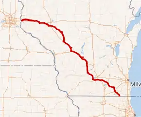 | 305.4 | 491.5 | Southern end of WIS 89 overlap; western end of WIS 59 overlap | ||||||