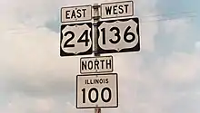 Initially, before the formation of US 136, parts of IL 9, IL 31, IL 43, IL 24, IL 1, and IL 10 followed what is now part of US 136. The rest of it wasn't built yet.[7] Over time, new roads were being built. By 1929, IL 98, IL 122, and IL 119 were established.[8] In 1935, IL 31 was superseded by US 24 while IL 43 was superseded by parts of IL 122 and IL 120. In 1939, a part of Illinois Route 10 (IL 10) moved its western terminus from Decatur to Keokuk, Iowa. This caused the relocation of IL 98 from Adair–Duncan Mills route to its present-day routing. This also caused IL 9 to relocate northward. Also, IL 119 finished extending to IL 10 east of Havana.[9][10] Since 1950, most of IL 119, as well as some sections of IL 10, were removed in favor of US 136.[4]