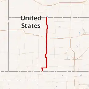 Between 1930 and 1931, US-183 was extended south into Kansas, across US-36, to US-83 in Dresden.[1] Between July 1938 and 1939, US-183 was altered to follow US-36 east to K-1 in Phillipsburg, then south along K-1 to US-160. It then continued west along US-160 to K-34 in Sitka, which it followed south from Sitka to the Oklahoma border.[3][4] Between 1941 and 1944, US-183 and US-83 were swapped within Nebraska and a small portion into Kansas, which straightened their alignment and eliminated the overlap between the two in Norton. The former alignment of US-83 from northeast of Selden to east of Woodruff became US-383, now K-383.[5][6]