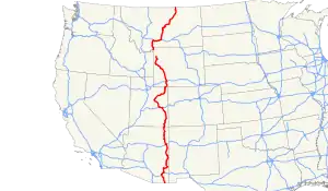 I-90 in Bozeman. The highways travel concurrently to southwest of Big Timber.