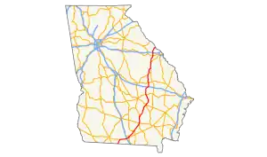 U.S. Route 221 (US 221) in the U.S. state of Georgia is a south–north U.S. Highway. It travels from the Florida border near the Quitman area to the South Carolina state line, north of Pollards Corner. The highway connects North Central Florida with Upstate South Carolina.
