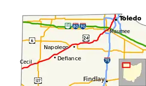 ![]() US 24 highlighted in red across northwestern Ohio | ||||