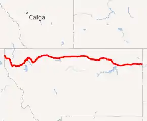 The most notable reroutings from the original corridor are: 1) the section from Moyie Springs, Idaho to just inside the Montana border, which once ran much further north, as seen on the 1937 map of the area[2] (Old US 2 N. intersects today's US 2 about 2.6 miles (4.2 km) east of the state line); 2) passing north of Kila; 3) a route swap with S-206 between Evergreen and Columbia Falls in 1983 (as seen in the 1985 state map);[3] 4) widening the highway to three or four lanes between Hungry Horse and West Glacier in 1987 (as seen on page 35 of the 2013 road log); and 5) construction of a more direct route between East Glacier and Browning over the Two Medicine River (which eliminated the concurrency with US 89 between Kiowa and Browning). All these former segments are still in use today. The former section from East Glacier to Kiowa is MT 49.