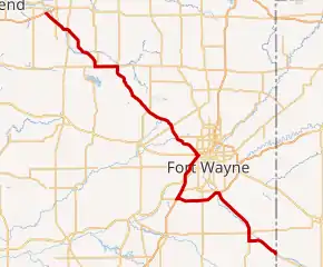 | Fort Wayne | 41.045 | 66.056 | 302 | Southern end of US 24 concurrency | ||