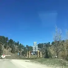 US 16 in Custer. The highways travel concurrently to east-northeast of Hill City.
