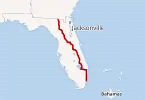 U.S. Route 441 (US 441) in Florida is a north–south United States Highway. It runs 433 miles (697 km) from Miami in South Florida northwest to the Georgia border north of the Lake City area.