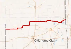 | Dewey | Vici | 39.5 | 63.6 | Western end of SH-34 concurrency | |