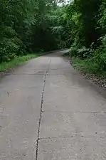 The Old US 64-Van Buren Segment is a stretch of historic roadway in Van Buren. Now designated Oak Lane, this stretch of concrete road was built in 1928 by Shultz Construction Co. as part of the original alignment of US 64, whose current alignment (built in 1968) travels to the south. This stretch of road is about 0.65 miles (1.05 km) long and 18 feet (5.5 m) wide, carrying two lanes of traffic with no shoulder. It is made out of a tan-colored aggregate mixed with concrete. This segment was part of the first concrete-paved road in Crawford County.[19]