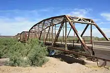 The historic Gillespie Dam Bridge over the Gila River. Built in 1927, it once carried US 80.