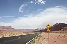 The Utah segment of US 89A was first commissioned as part of State Route 11. This highway ran from Nephi to the Arizona state line near Kanab. This route is still drivable as the modern US 89A, US 89, and SR-132. With the establishment of the United States highway system in 1926, most of SR-11 was used for the routing of US 89 through southern Utah; the internal designation used by state agencies remained SR-11.[5] In 1969, as part of a series of changes to state routes, the portion north of Sevier Junction (I-70 and US 89 near Joseph) was transferred to other routes, removing the only part of State Route 11 that was signed with the state designation. It is also during this time that a new alignment for US 89 was constructed to serve the Glen Canyon Dam, with SR-11 being now signed as US 89A south of Kanab and US 89 to the north. As part of the 1977 Utah state route renumbering to conform signage and legislative definitions, SR-11 was truncated to what is now signed US 89A.[5] The route was signed SR-11, with "TO US 89A" at the northern terminus in Kanab and a "TO US 89" at the Arizona state line. In 2008, however, SR-11 was deleted after a bill in the Utah legislature was passed to restore U.S. Route 89A in Utah.[6]