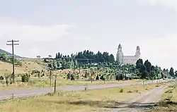 At Gunnison, US-89 turns east before curving northeast into the Sanpete Valley, formed by the San Pitch River, a tributary of the Sevier River. Along US-89 in this valley are several small cities: Manti, Ephraim, Mount Pleasant, and Fairview. Between Ephraim and Mount Pleasant, US-89 meets the south end of SR-132 at Pigeon Hollow Junction. SR-132 was formerly US-189, connecting US-89 with US-91 in Nephi. Beyond Fairview, where the scenic SR-31 turns east, US-89 climbs out of the valley, reaching a summit at Hill Top (elevation 6400 feet/2000 m). Thistle Creek parallels the next leg of the highway, descending through a canyon to the junction with US-6 near the ghost town of Thistle, flooded by a landslide in 1983. Thistle Creek and Soldier Creek, paralleled by US-89 and US-6, merge near this junction to form Spanish Fork, which the overlapped routes follow northwest through Spanish Fork Canyon into the Utah Valley at Moark Junction. US-89 splits to the north from US-6 there, skirts the west edge of Mapleton, and merges with SR-51 - the old Arrowhead Trail (US-91) - south of downtown Springville.[5]