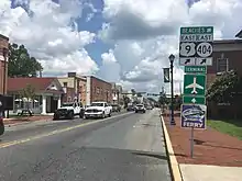 The section of US 9 between US 113 and DE 1 serves as part of a primary hurricane evacuation route from the Delaware Beaches to points inland while the section of US 9 between US 13 and US 113 serves as part of a secondary hurricane evacuation route from the coastal areas.[6] Sections of US 9 in Delaware are part of the Delaware Byways system. The portion of the route between DE 5 in Harbeson and DE 1 in Five Points is designated as part of the Delaware Bayshore Byway, which is also a National Scenic Byway.[7][8] The portions of the route between DE 1 and Kings Highway and US 9 Bus. and the Cape May–Lewes Ferry terminal in Lewes are designated as part of the Historic Lewes Byway, Gateway to the Bayshore.[9] US 9 in Delaware has an annual average daily traffic count ranging from a high of 58,655 vehicles along the DE 1 concurrency to a low of 977 vehicles at the Cape May–Lewes Ferry terminal.[1] The portion of US 9 in Delaware east of DE 18/DE 404 in Georgetown is part of the National Highway System.[10]