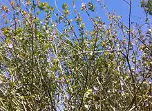 The U.S. Virgin islands dry forest is a sub-tropical dry forest[1] spanning the United States Virgin Islands with varying degrees of coverage on each island. A dry forest is a habitat type defined by the World Wide Fund for Nature as being a predominantly deciduous forest located in a climate that is warm year-round, and may receive several hundred centimeters of rain per year, they have long dry seasons which last several months. Dry forests can receive 850-1100mm of precipitation per year.[2] In the case of the U.S. Virgin islands forest high quantities of sea salt from the ocean decreases the growth height of the trees, aiding in the creation of two canopy layers that are commonly found at an elevation below 300 meters.[3] Additionally the unique wind pattern that the islands create may have added to this effect.