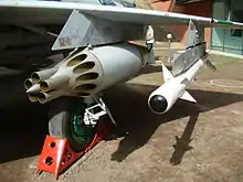 MiG-21MF with R-3 (AA-2) air-to-air missile and UB-16 launcher with S-5 rockets.