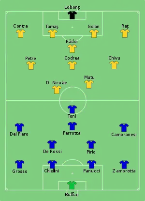 - "Team Line-ups – Group C – Italy-Romania" (PDF). Union of European Football Associations. 13 June 2008. Retrieved 11 June 2012.