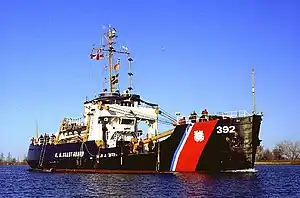 USCGC Bramble (WLB-392) is one of the 39 original 180-foot (55 m) seagoing buoy tenders built between 1942 and 1944 for the United States Coast Guard. In commission from 1944 until 2003 she saw service in Pacific, Caribbean and Atlantic waters as well as the Great Lakes. In 1947 Bramble was present at the Nuclear testing at Bikini Atoll and in 1957 a circumnavigation of North America involved a forced traverse of the Northwest Passage. After decommissioning in 2003 Bramble became a museum ship in Port Huron, Michigan. In 2018 she was sold to a private owner, who is preparing MV Bramble to repeat her historic 1957 circumnavigation of North America.