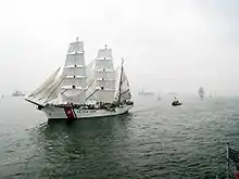 USCGC Eagle (WIX-327), formerly the Horst Wessel and also known as the Barque Eagle, is a 295-foot (90 m) barque used as a training cutter for future officers of the United States Coast Guard. She is one of only two active commissioned sailing vessels in the United States military today, along with USS Constitution which is ported in the Boston Harbor. She is the seventh Coast Guard cutter to bear the name in a line dating back to 1792, including the Revenue Cutter Eagle.[1][2][3]