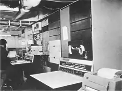 The ship, primarily assigned to the Pacific, [note 3] was equipped with an early shipboard data acquisition and processing system designated the Hydrographic Data Acquisition System (HYDAS) based on the PDP-9 computer. The identical system was installed aboard Harkness. Similar systems were installed on Sgt. George D Keathley (T-AGS-35) and Kellar (T-AGS-25).[8][note 4] One computer was dedicated to real time collection of survey data and another to processing the data for making nautical charts or being a backup for the real time data collection in event of failure of that computer. A real time navigation plot was generated on a flatbed plotter. The processing computer processed data collected by the ship and the sounding launches which had an associated data collection system designated HYSURCH for hydrographic survey and charting system. The launches themselves were 36 foot fiber glass, diesel powered, "sports sedans" capable of 30 kn (35 mph; 56 km/h) smooth water speed and modified for survey operation.[10]