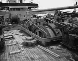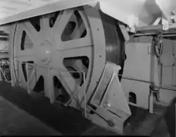 In 1952 Neptune was assigned to Project Caesar, the unclassified name for the installation phase of SOSUS. The system's mission was declassified in 1991.[9] On 17 February 1953 the ship was named Neptune and withdrawn from the reserve fleet.[6] The ship then went to the Bethlehem Steel Co. in Baltimore, Maryland for a number of modifications: e.g., electric cable machinery (in place of steam), precision navigation instrumentation, and a helicopter platform over the fantail.[5] Cable drums 15 ft (4.6 m) in diameter and bow sheaves spanning 12 ft (3.7 m) were among the more visible modifications.[10] On 1 June 1953 the ship was commissioned USS Neptune (ARC-2), with Cdr. Robert A. Bogardus in command.[5]